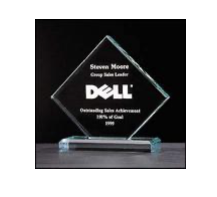 Diamond shaped 3/4" thick jade acrylic award with custom text and layout. Engraving area is 5 1/2 in. x 5 1/2 in. To send your artwork/layout file (Word,PDF) for this product by email, Click Here.